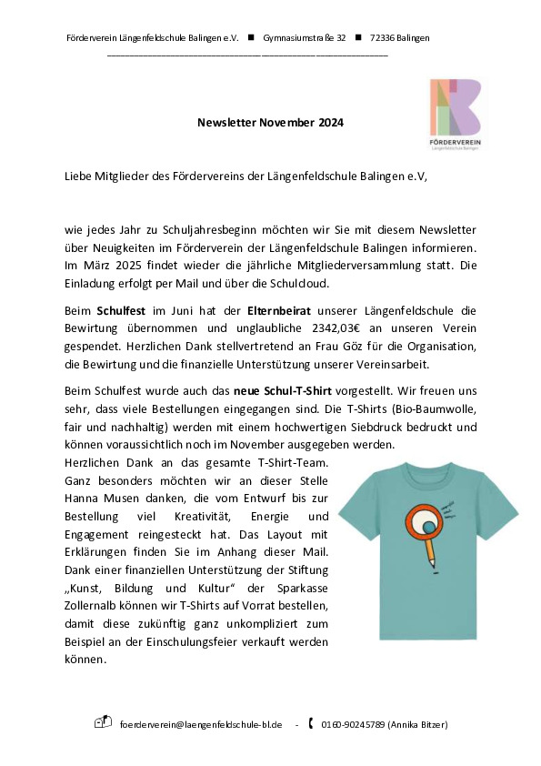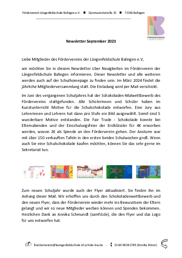 Newsletter des Schulfördervereins